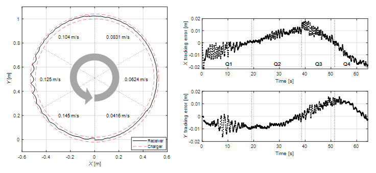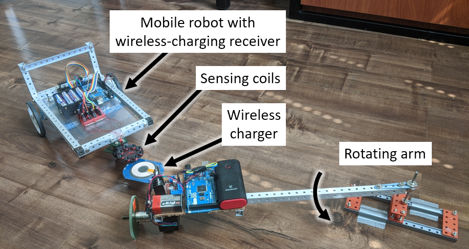 Mobile robots have many practical uses, and they can also be used to test vehicle control strategies. For my M.S. thesis I attached a camera and magnetic field sensor to a mobile robot. These sensors allowed the robot to autonomously approach and position itself above a commercial wireless charger with high precision. The robot stayed aligned with the charger even as the charger moved, allowing for effective wireless power transmission.